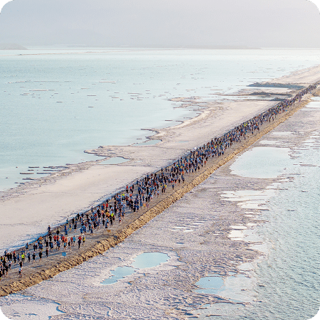 חווית ריצה חד פעמית ויוצאת דופן - לחצות את הים על גבי סוללות עפר שטוחות בנוף בראשית מדברי.